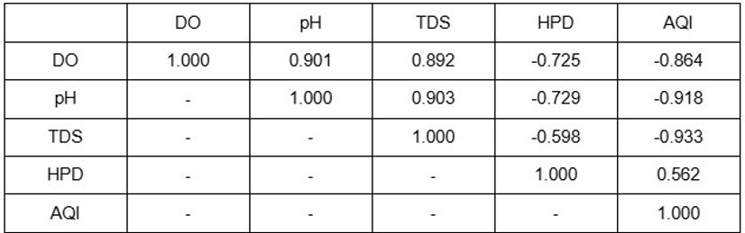 The trends also align with the assumption of HPD and AQI serving as indicators of industrial pollution, and that they directly correlate with water parameters of nearby rivers. As DO, pH, and TDS displayed a negative Pearson correlation coefficient with the two indicators, all river parameters are inversely related to industrial pollution, with higher values of river parameters signifying lower levels of industrial pollution as well as higher water quality and vice versa. Consequently, all other pairs of parameters display positive relationships. Since all parameters had concluded the Han River’s high level of contamination relative to the Donau River, the strong relation between all parameters displayed through the Pearson correlation matrix displays this conclusion as highly reliable. This conclusion also aligns with the trend of the Han River seemingly experiencing greater industrial activities than the Donau River, proposing industrialization as a primary variable affecting the two rivers’ water quality and level of pollution. Lastly, the correlation matrix provides all five parameters examined as appropriate for comparing the level of industrial pollution among different rivers.