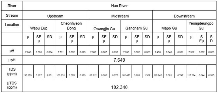 The Han River runs throughout South Korea and passes through multiple cities, from the riverhead Geomryongso, Taebaek to the Yellow Sea. It is a significant aspect of South Korea, supplying clean water to over 20 million people solely within Seoul, the nation’s capital (Lee et al., 2019). Occupying a watershed area of 26200 km2, the Han River has been straightened to be of 469.7 km in length for water control and presents a diverse ecosystem that should be maintained; yet the continual reduction in species such as the Korean eel (Anguilla japonica) indicates the threat faced by its ecosystem due to environmental degradation and pollution (Lee et al., 2019). The Han River is also extremely significant in the cultural context by providing aid throughout the development and settlement of the Korean civilization in addition to the economic benefits a long, controlled river provides (Lee et al., 2019). The management of the Han River is strictly managed by the South Korean government, as the river is an essential aspect of the nation. Subsequent to the industrialization of the nation, the government had recognized the importance of water quality management and undertook “multi-purpose dam” construction projects in the upstream region of the Han River while enacting five new regulations to protect the river (Shin et al., 2016). However, the management of the Han River has been increasing in difficulty as the water quality of the river body appeared to deteriorate. In particular, the eutrophication of the Han river is a substantial concern when managing the river’s water quality: the decline in BOD/COD ratio between 1986 and 2006 displays the increase in the proportion of recalcitrant organic matter, suggesting of a possibility of eutrophication of the river exacerbating(Shin et al., 2011). On the contrary, a decreasing trend of BOD levels could be observed due to the newly implemented sewage treatment facilities (Shin et al., 2011). Such evolved methods of regulation of the environment have begun to emerge in South Korea, invoked by the heightening of the pollution levels. As one of the selected procedures since the 1970s, Integrated Water Resource Management (IWRM) approaches are environmentally sustainable and considers human necessities (Hwang et al., 2020). Clearly illustrated by this study, methods of measuring and maintaining water quality become increasingly important as the consequential effects of environmental pollution become more drastic and complex.